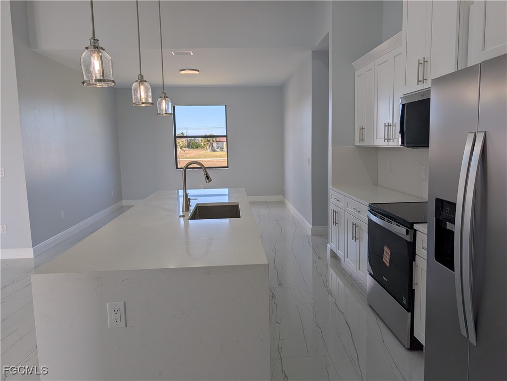Located in a fast growing, highly sought-after Northwest Cape Coral neighborhood, this 3-bedroom plus den, 2-bath, 2-car garage home offers modern elegance, comfort, and thoughtful design throughout. From the moment you step inside, you'll be welcomed by an open, airy layout filled with natural light and beautiful architectural details.