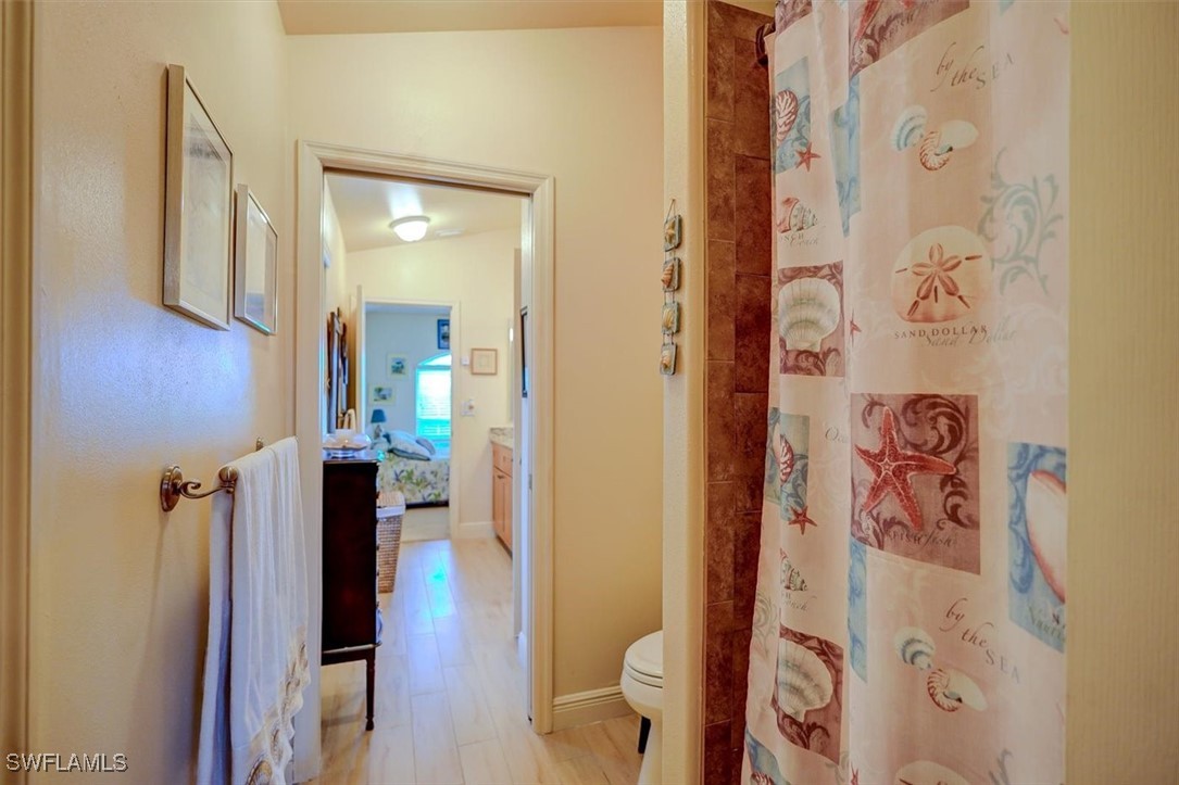 The guest bathroom conveniently doubles as a pool bath and a Jack and Jill for both spare rooms enhancing the home's functionality. Recent upgrades include a new metal roof (2023), rescreened pool enclosure, 6" gutters around the home, composite decking on the Captain's Walk Dock, and a transition to a saltwater pool system. Additionally, a new solar pool heater and accordion hurricane shutters were added to protect the entire lanai. The side windows feature impact-rated clear panels, allowing natural light while ensuring safety.