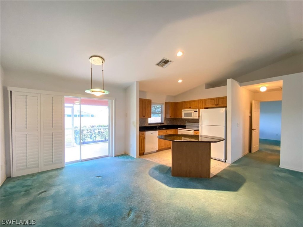 A wonderful family home or investment property awaits in the desirable Skyline area. NEW ROOF, NO FLOODING (rare zone D) no flood insurance required. Roof replaced 6/2023. Some new paint and flooring can transform this property. Open floor plan with Island eat in Kitchen makes this home feel bigger than it is. This light & bright home boasts vaulted ceiling & single hung windows. Spacious primary bedroom has en- suite bathroom with granite countertop vanity, renovated shower, walk-in closet. Guest rooms are bright and roomy. Guest bath has tub/shower combo feature. Ceilings fans throughout. Indoor laundry w/ slop sink. Raised air handler in garage for extra space and storage racks. The exterior boasts mature landscaping concrete curbing, palm trees & screened in lanai. Hot water heater is about 1 year old. Rare find under $335,000 in this neighborhood!