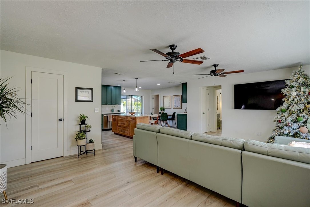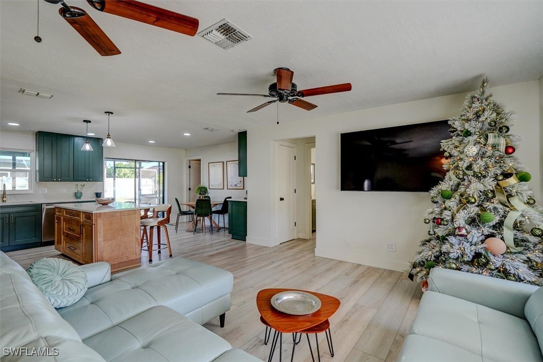 Annual lease @ $1800 a month, also available for $2500 a month on a month-to-month lease, or $2000 a month, on a 6-month lease. 1 pet allowed with approval @ additional $100 a month, Fenced in yard. Step inside to find a residence that has been completely remodeled & transformed into a beauty. The thoughtfully designed split bedroom layout provides an ideal configuration for families or snowbirds alike. Open floor plan that blends the new modern kitchen and living room seamlessly. With an open concept floor plan, 3 bedrooms, 2 full baths, & a 2-car garage with epoxy floor. This property has been completely renovated new interior paint, interior doors, baseboards & luxury plank Vinyl throughout. The kitchen has been transformed into an island kitchen and features brand new shaker style, soft close wood cabinets, white Quartz countertops w/ pot filler custom hood vent, and coffer bar for all your get togethers. Adorned with LG stainless steel appliances ready for cooking your favorite meals and entertaining guests. The primary suite is ample and features a walk-in closet & the ensuite w/a new vanity w/quartz top, new mirror toilet and tub/shower combo. Two large spare rooms with appointed ample closets are fitting for kids or guests alike. The spare bathroom has a new vanity, flooring & toilet. Time to step outside to enjoy the outdoor living w/the lanai under truss fully fenced in yard. Nestled just off of Santa Barbara Blvd, this home offers the privacy of a neighborhood with the added benefit of being minutes from some of Cape Coral's best shopping, dining and entertainment.