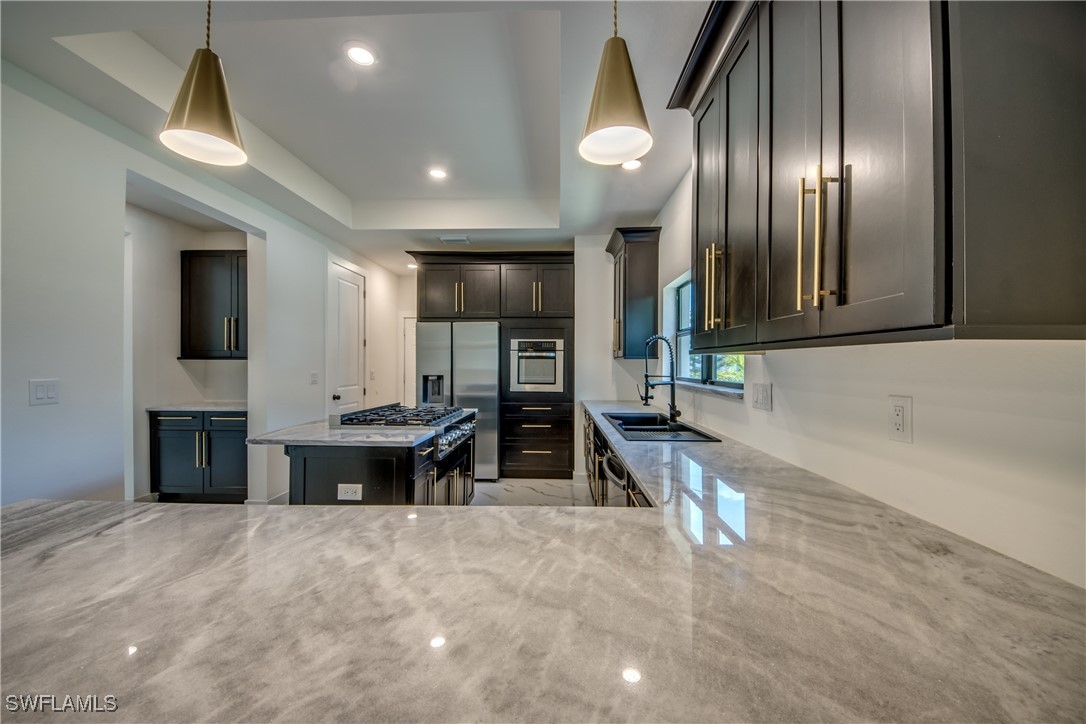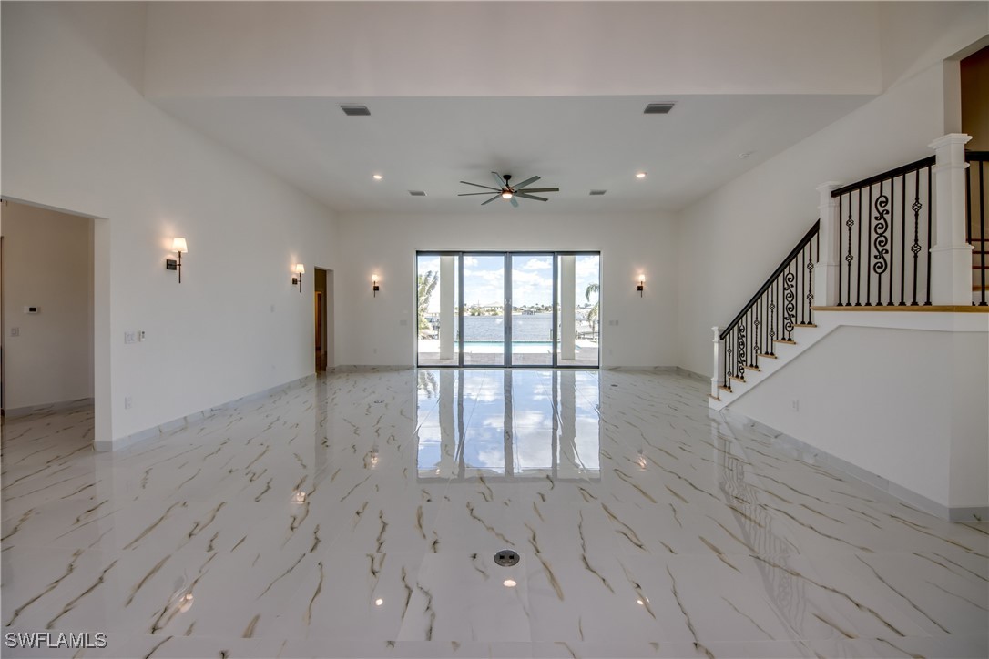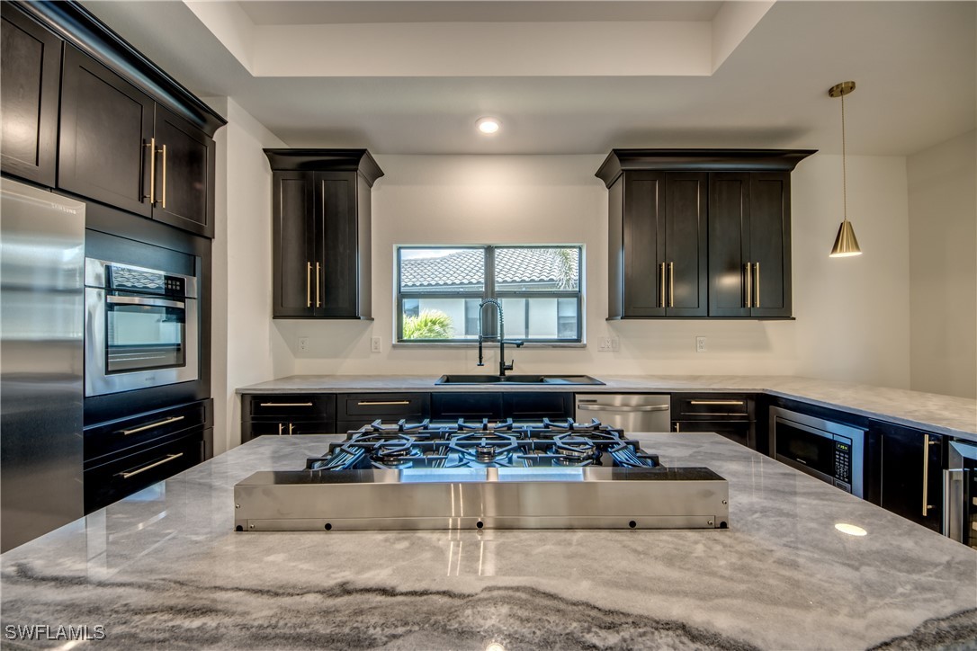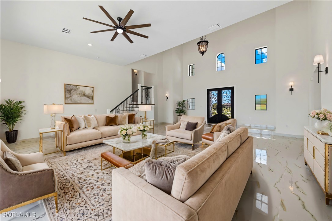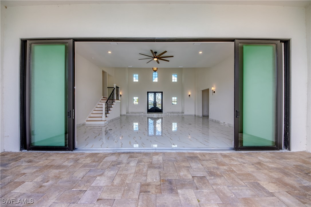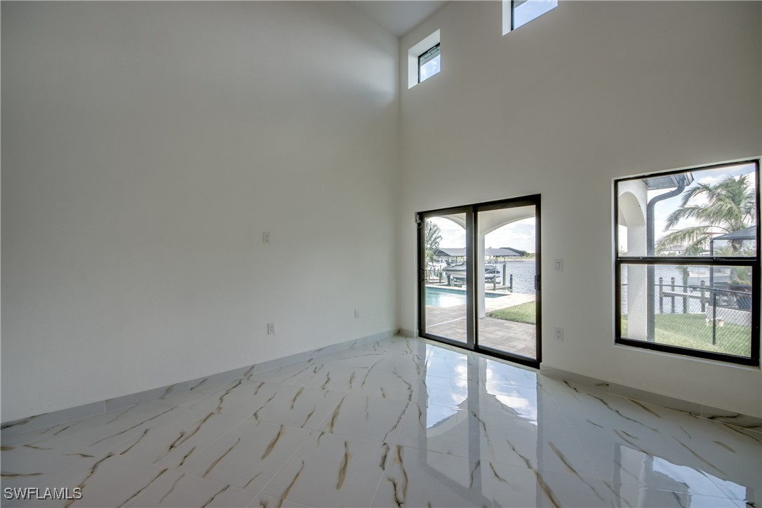 DIRECT GULF ACCESS, NO Bridges, Custom New construction that situated on a prime corner lot with direct sailboat access (no Bridges) and breathtaking views of Meadow Lake. This exceptional new construction pool home offers nearly 5,000 sq. ft. of indoor and outdoor living space. Designed for comfort, entertaining, and ultimate Florida living, this estate showcases soaring 23-foot ceilings, a dramatic custom wrought iron staircase and entrance doors, and a spacious great room with panoramic views of the lake and pool--creating a stunning focal point for both gatherings and relaxation. This home boasts 5 spacious bedrooms and 4 bathrooms, including two luxurious primary suites--one upstairs with a private balcony, cozy sitting area, and spa-like bath with rainfall shower and body jets, and another on the main level with direct pool access. The chef's kitchen is a culinary dream, featuring a 6-burner gas cooktop, 36" gas range, custom wood cabinetry, premium stainless steel appliances, a wine fridge, and a wet bar perfect for entertaining. Three additional guest bedrooms are located on the main floor, including one with a private exterior entrance and full guest bath. An expansive screened lanai leads to the 14x22 saltwater pool and spa, equipped with premium Hayward systems and a lifetime transferable warranty on the Pebble Tech finish. Additional highlights include a 3-car garage, a fully fenced yard ideal for pets, and a solid concrete construction with impact-resistant doors and windows. The home is equipped with a three-zone, high-efficiency Rheem HVAC system with a 10-year transferable warranty, providing long-term comfort and peace of mind.
