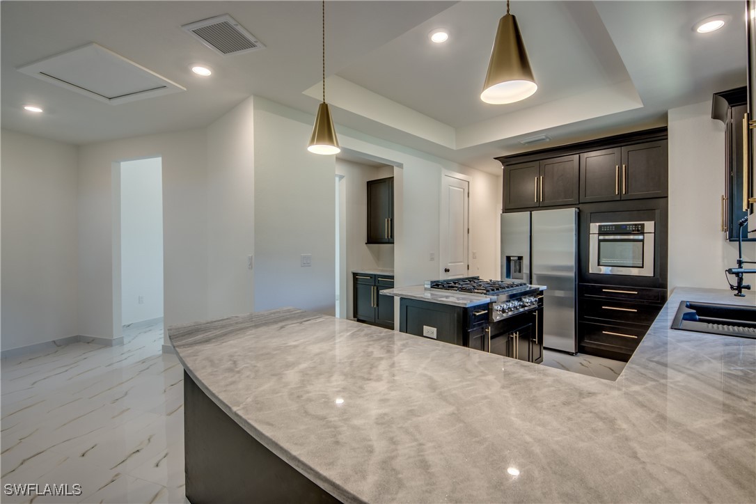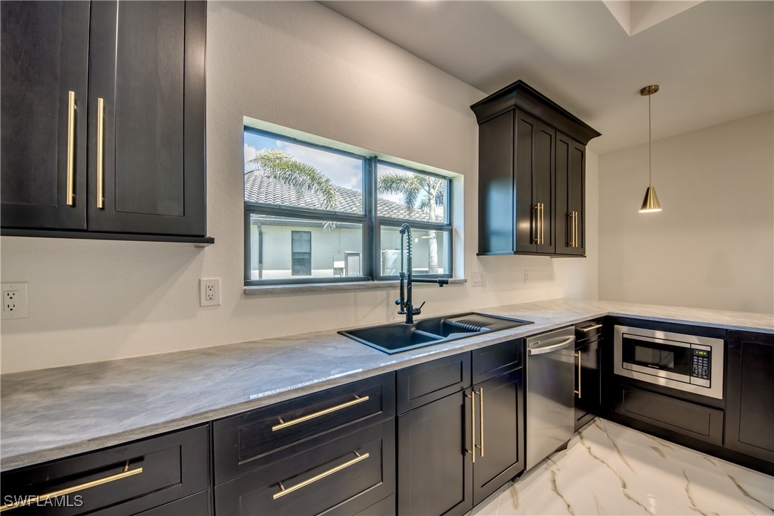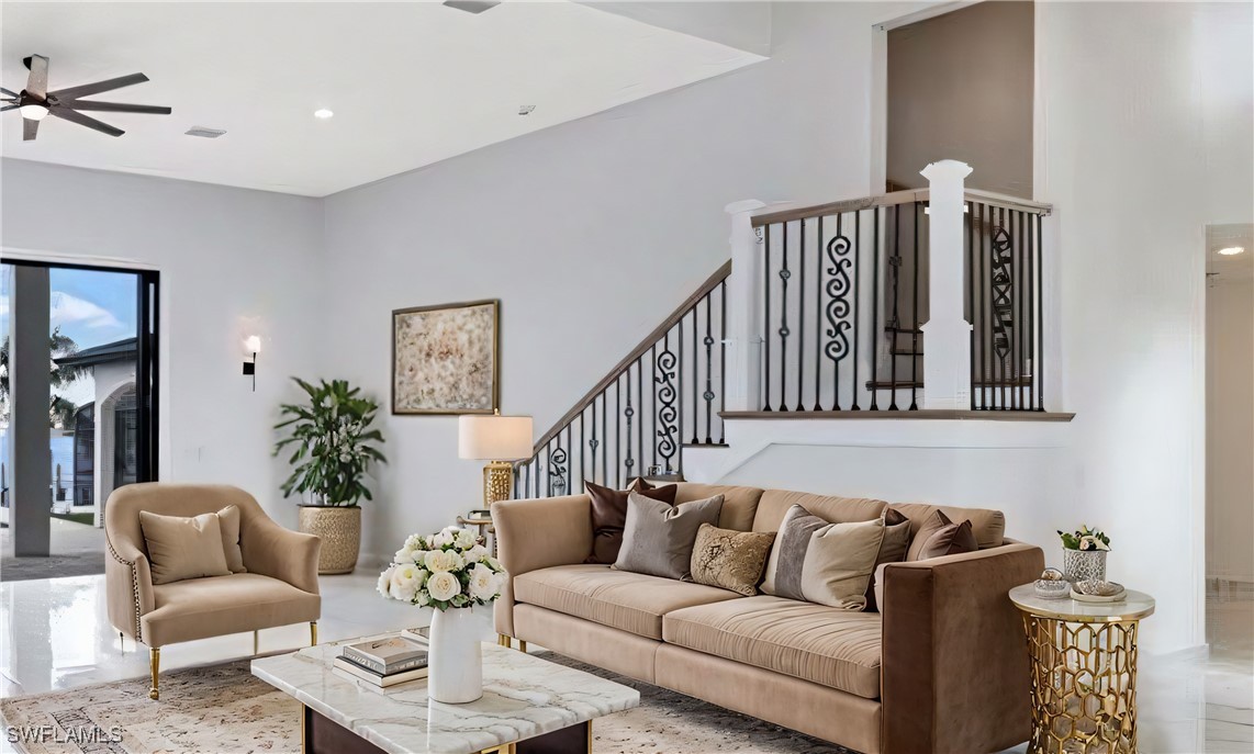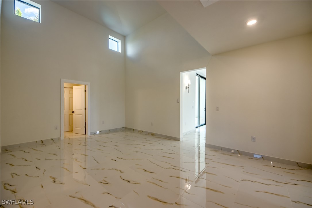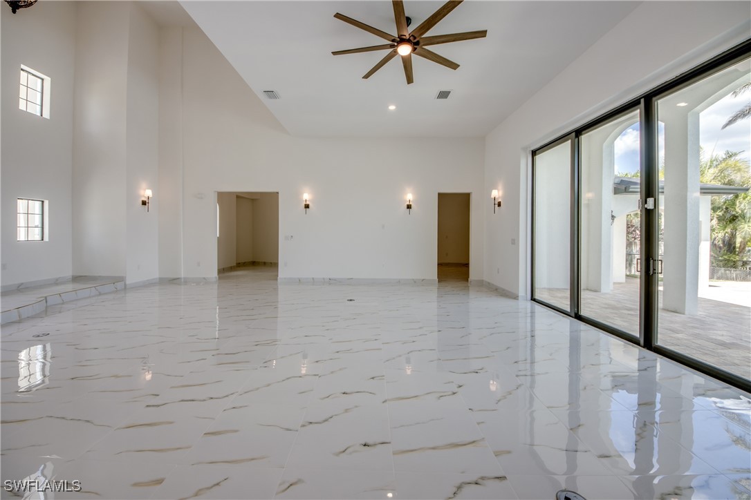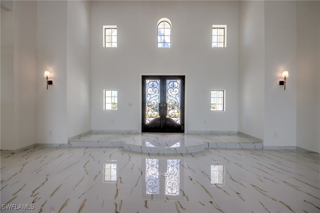 DIRECT GULF ACCESS, NO Bridges, Custom New construction that situated on a prime corner lot with direct sailboat access (no Bridges) and breathtaking views of Meadow Lake. This exceptional new construction pool home offers nearly 5,000 sq. ft. of indoor and outdoor living space. Designed for comfort, entertaining, and ultimate Florida living, this estate showcases soaring 23-foot ceilings, a dramatic custom wrought iron staircase and entrance doors, and a spacious great room with panoramic views of the lake and pool--creating a stunning focal point for both gatherings and relaxation. This home boasts 5 spacious bedrooms and 4 bathrooms, including two luxurious primary suites--one upstairs with a private balcony, cozy sitting area, and spa-like bath with rainfall shower and body jets, and another on the main level with direct pool access. The chef's kitchen is a culinary dream, featuring a 6-burner gas cooktop, 36" gas range, custom wood cabinetry, premium stainless steel appliances, a wine fridge, and a wet bar perfect for entertaining. Three additional guest bedrooms are located on the main floor, including one with a private exterior entrance and full guest bath. An expansive screened lanai leads to the 14x22 saltwater pool and spa, equipped with premium Hayward systems and a lifetime transferable warranty on the Pebble Tech finish. Additional highlights include a 3-car garage, a fully fenced yard ideal for pets, and a solid concrete construction with impact-resistant doors and windows. The home is equipped with a three-zone, high-efficiency Rheem HVAC system with a 10-year transferable warranty, providing long-term comfort and peace of mind.