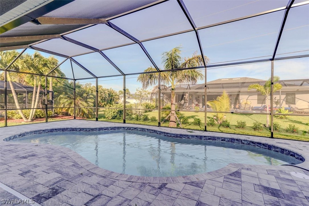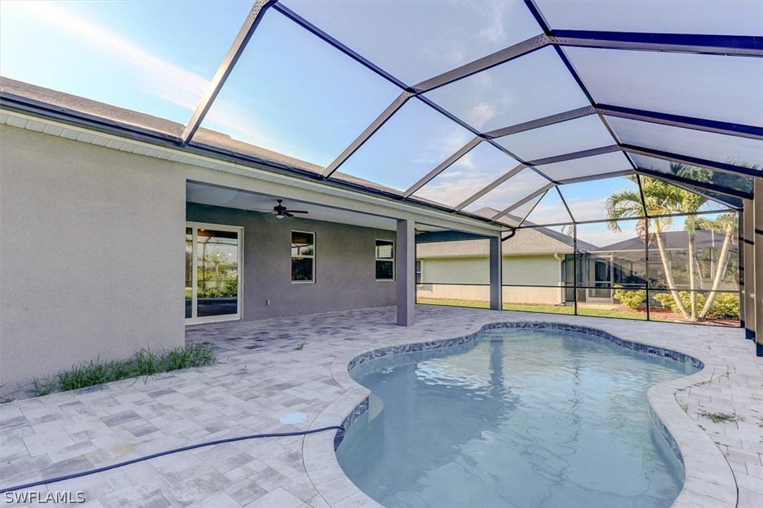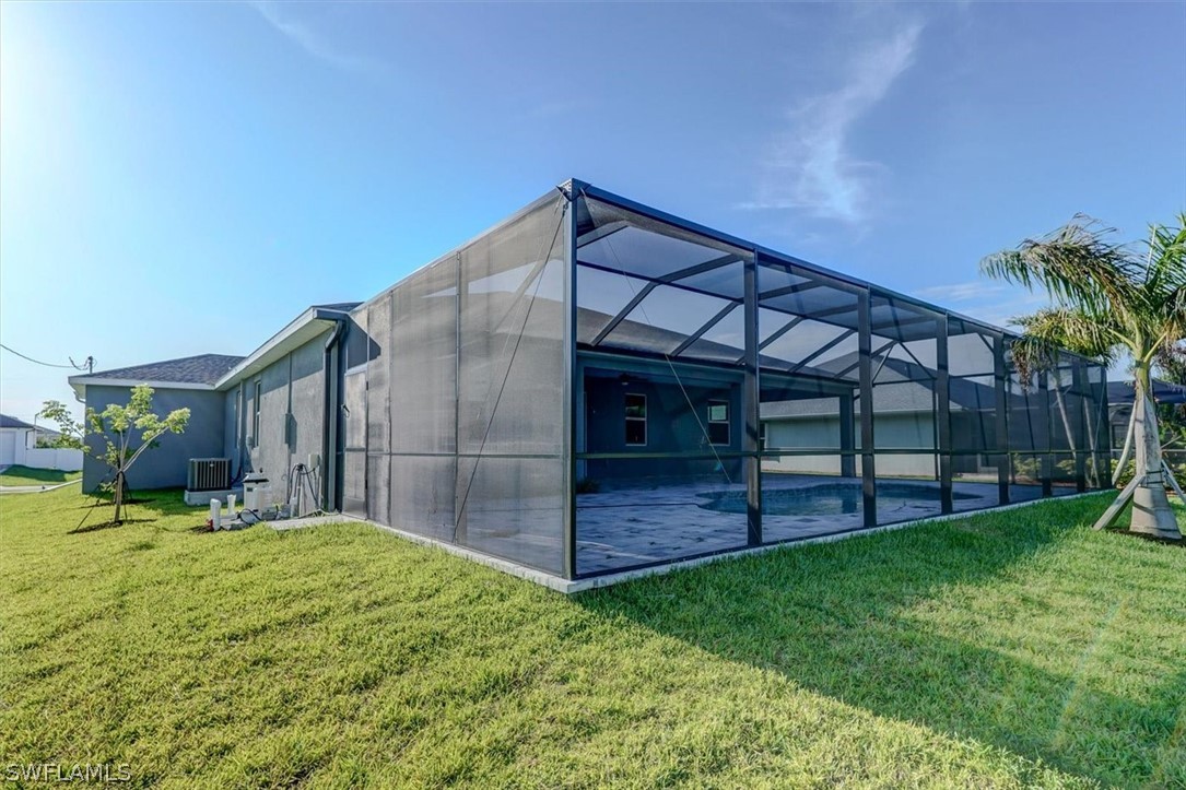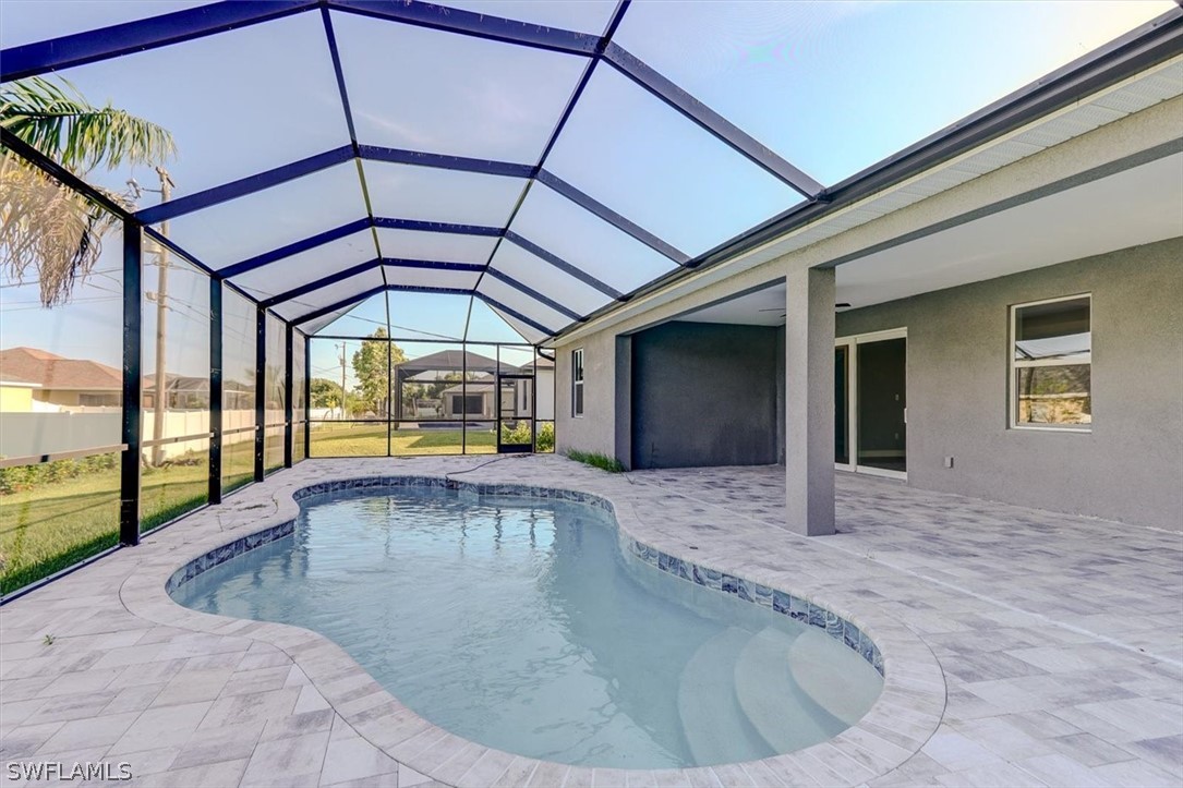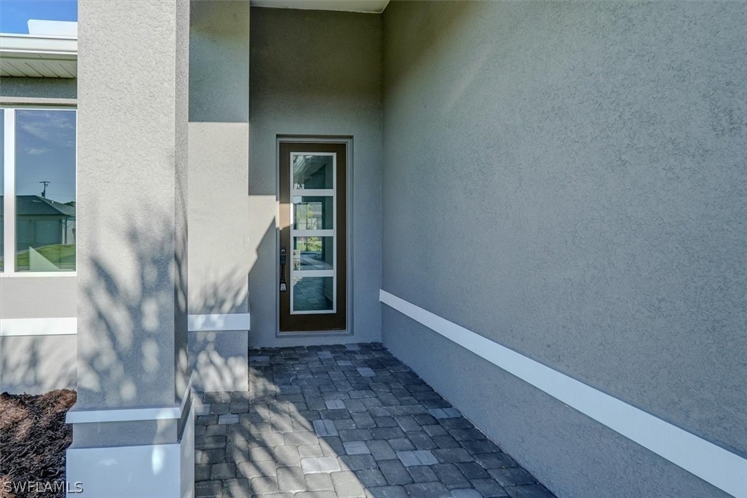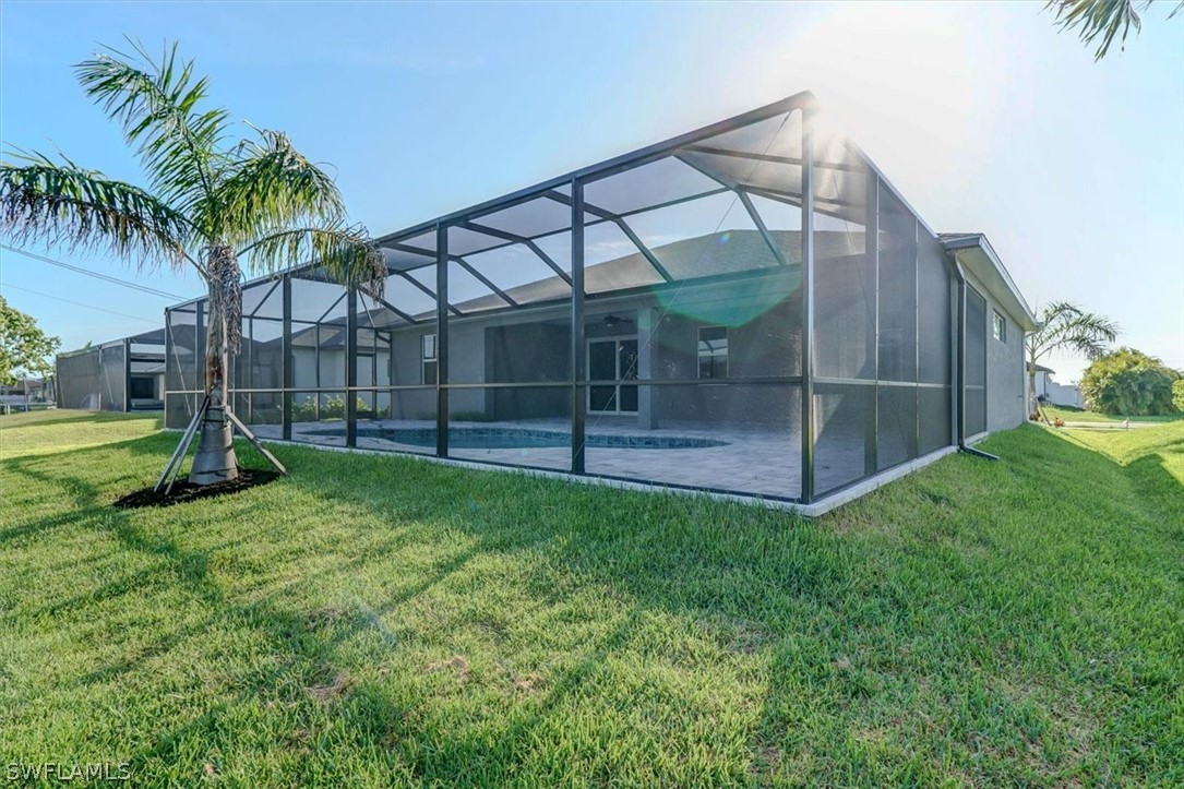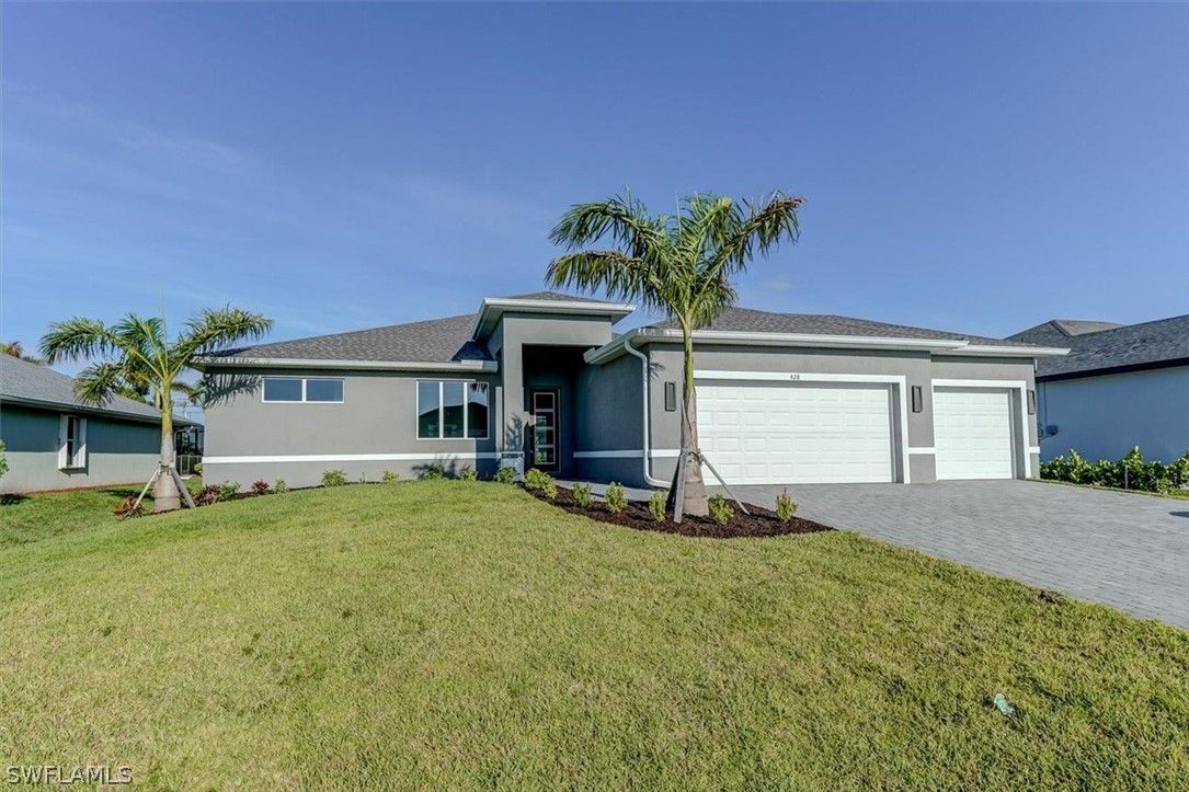 PAPERWORK SUBMITTED TO FEMA TO EXEMPT IT FROM FLOOD ZONE, NO FLOOD INSURANCE REQUIRED. BEAUTIFUL NEW CONSTRUCTION POOL HOME w/ 3 CAR GARAGE IN SW CAPE CORAL WITHOUT THE WAIT! Certificate of Occupancy in hand. CITY WATER & SEWER IN Situated in a desirable SW neighborhood, surrounded by Gulf Access canals. Come see this beautiful 4-bedroom w/Den, 2-bathroom 3 Car garage house before it's too late! Upon entering, you'll immediately notice the attention to detail. The heart of the home is the great room, which is flooded with natural light with glass sliders that lead to the extended under-truss lanai area and custom pool ready to soak in the Florida sun. The charming kitchen has ample cabinet space, stainless steel appliances, pantry, Quartz counter tops and a breakfast bar. Den that can be used a formal Dining space or a great home office or 5th bedroom. The primary suite includes transom window, tray ceiling feature and a barn door; the primary bath is spacious with double sinks Quartz countertops and spacious shower with frameless enclosure, double walk-in closets. Wood Plank Tile throughout the entire including the bedrooms. The three additional bedrooms share a guest bathroom with a tub/shower combo. 3 car garage to store all the toys. The exterior of the home includes a paver driveway & walkways along with sprinkler system upgraded landscaping. Other features that come with the home include All windows and doors are hurricane glass, paver driveway and lanai, a programmable thermostat, a Wi-Fi-enabled garage door opener. BUILDERS WARRANTY INCLUDED! Close to Schools, Shopping, amenities and many Parks, and recreational areas. Located in the heart of SW Cape Coral.