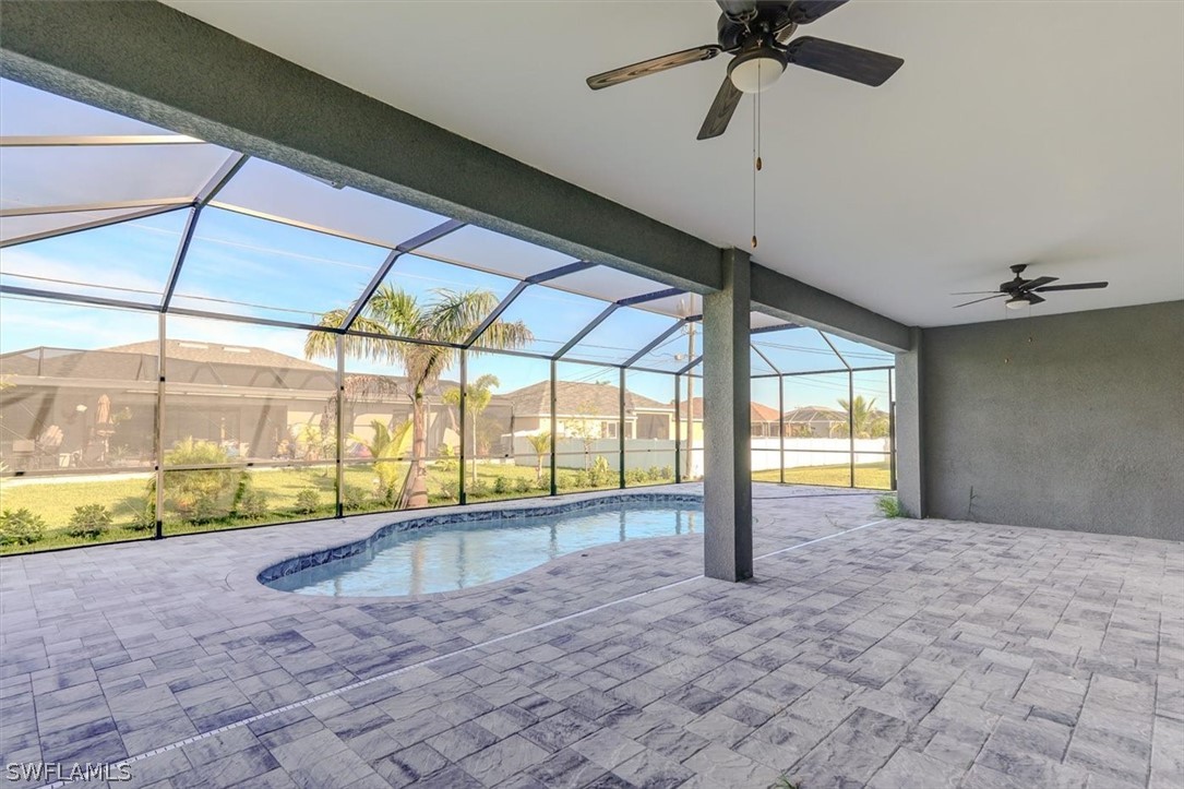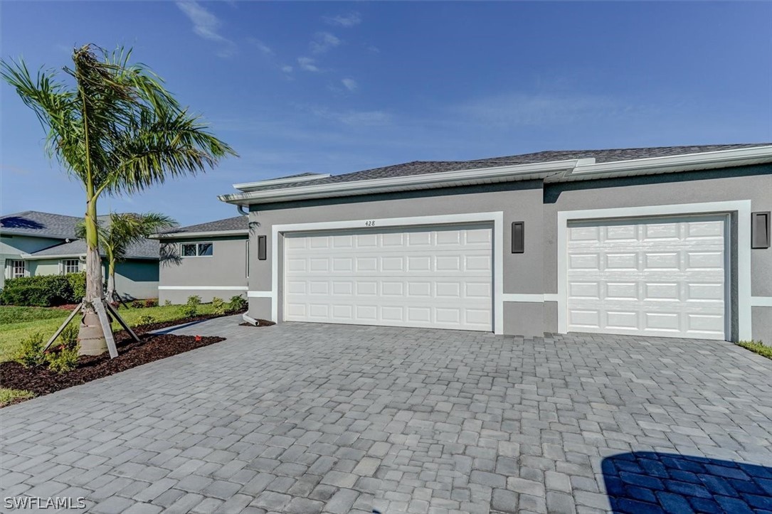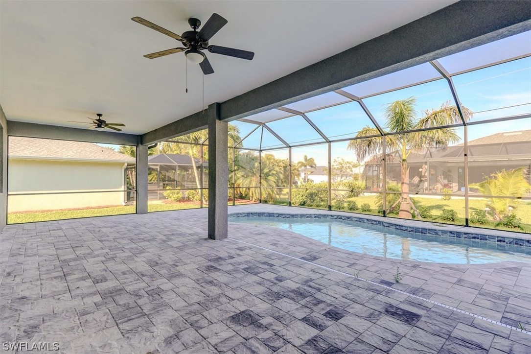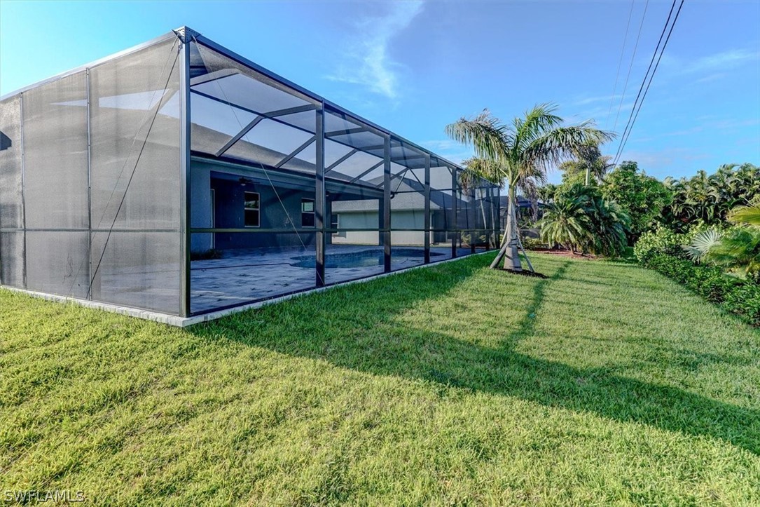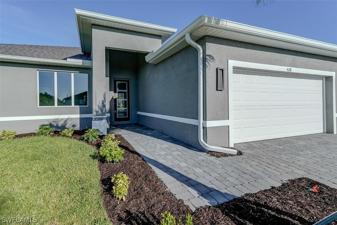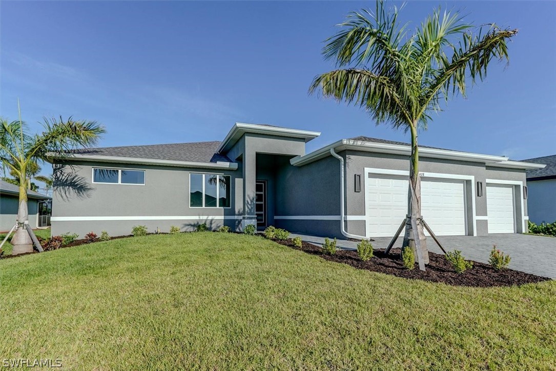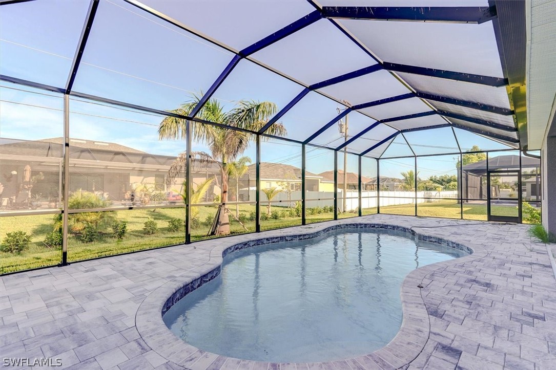 PAPERWORK SUBMITTED TO FEMA TO EXEMPT IT FROM FLOOD ZONE, NO FLOOD INSURANCE REQUIRED. BEAUTIFUL NEW CONSTRUCTION POOL HOME w/ 3 CAR GARAGE IN SW CAPE CORAL WITHOUT THE WAIT! Certificate of Occupancy in hand. CITY WATER & SEWER IN Situated in a desirable SW neighborhood, surrounded by Gulf Access canals. Come see this beautiful 4-bedroom w/Den, 2-bathroom 3 Car garage house before it's too late! Upon entering, you'll immediately notice the attention to detail. The heart of the home is the great room, which is flooded with natural light with glass sliders that lead to the extended under-truss lanai area and custom pool ready to soak in the Florida sun. The charming kitchen has ample cabinet space, stainless steel appliances, pantry, Quartz counter tops and a breakfast bar. Den that can be used a formal Dining space or a great home office or 5th bedroom. The primary suite includes transom window, tray ceiling feature and a barn door; the primary bath is spacious with double sinks Quartz countertops and spacious shower with frameless enclosure, double walk-in closets. Wood Plank Tile throughout the entire including the bedrooms. The three additional bedrooms share a guest bathroom with a tub/shower combo. 3 car garage to store all the toys. The exterior of the home includes a paver driveway & walkways along with sprinkler system upgraded landscaping. Other features that come with the home include All windows and doors are hurricane glass, paver driveway and lanai, a programmable thermostat, a Wi-Fi-enabled garage door opener. BUILDERS WARRANTY INCLUDED! Close to Schools, Shopping, amenities and many Parks, and recreational areas. Located in the heart of SW Cape Coral.