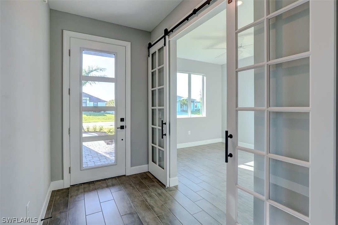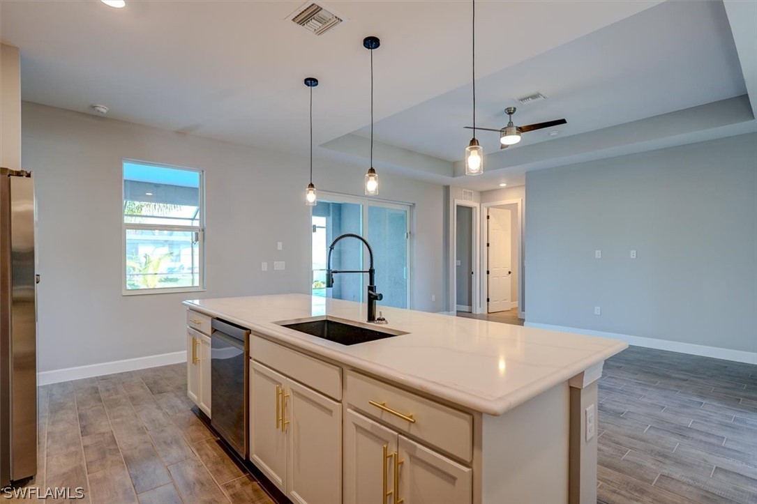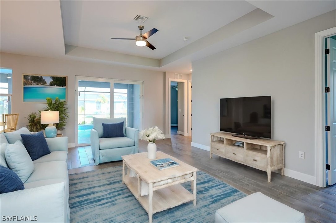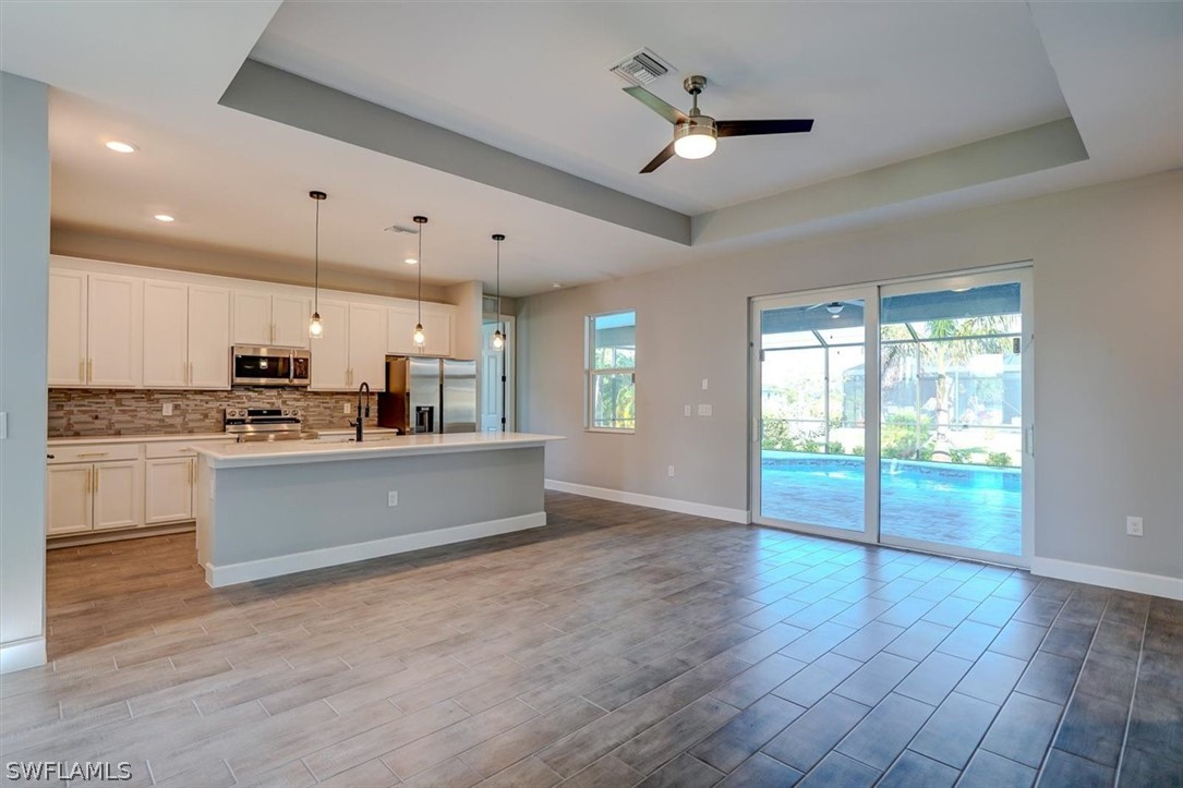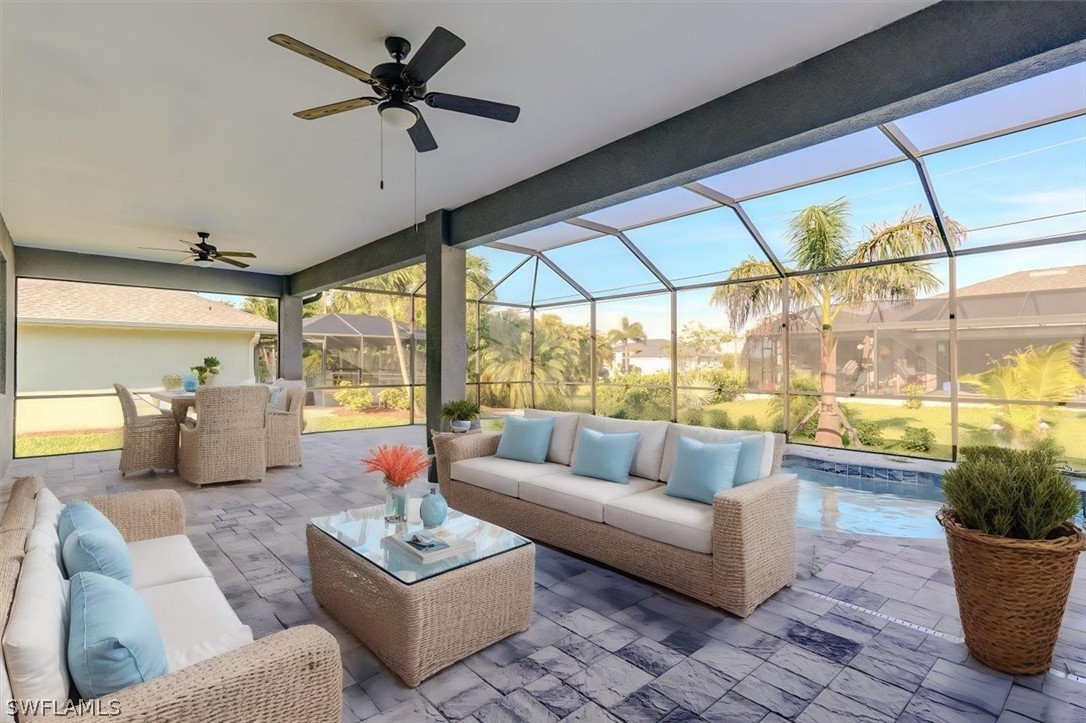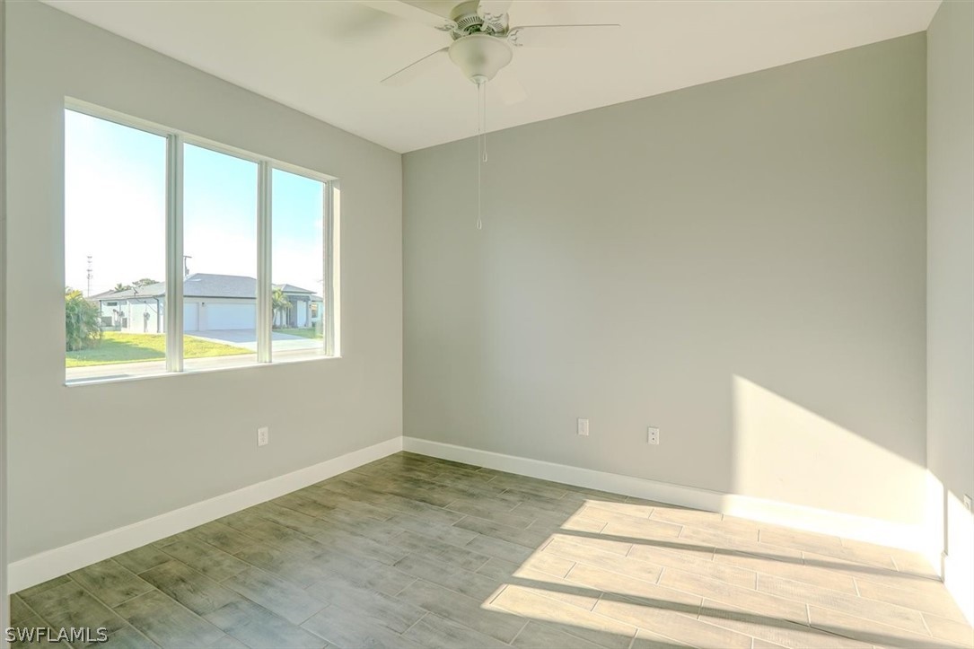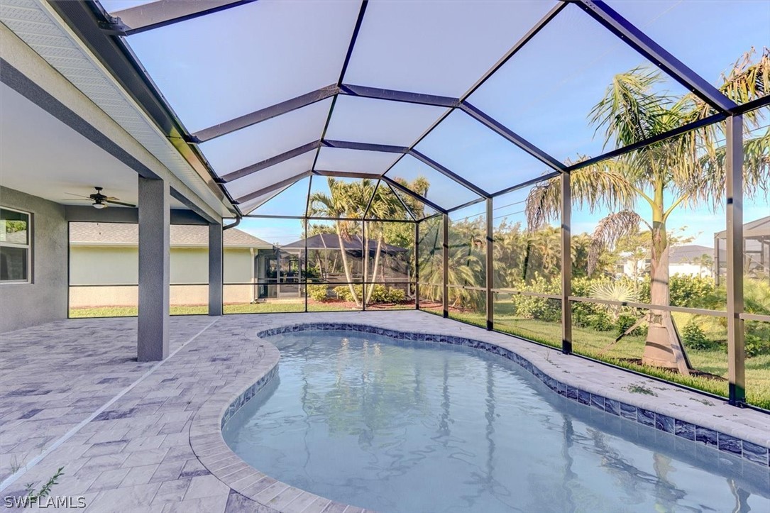 PAPERWORK SUBMITTED TO FEMA TO EXEMPT IT FROM FLOOD ZONE, NO FLOOD INSURANCE REQUIRED. BEAUTIFUL NEW CONSTRUCTION POOL HOME w/ 3 CAR GARAGE IN SW CAPE CORAL WITHOUT THE WAIT! Certificate of Occupancy in hand. CITY WATER & SEWER IN Situated in a desirable SW neighborhood, surrounded by Gulf Access canals. Come see this beautiful 4-bedroom w/Den, 2-bathroom 3 Car garage house before it's too late! Upon entering, you'll immediately notice the attention to detail. The heart of the home is the great room, which is flooded with natural light with glass sliders that lead to the extended under-truss lanai area and custom pool ready to soak in the Florida sun. The charming kitchen has ample cabinet space, stainless steel appliances, pantry, Quartz counter tops and a breakfast bar. Den that can be used a formal Dining space or a great home office or 5th bedroom. The primary suite includes transom window, tray ceiling feature and a barn door; the primary bath is spacious with double sinks Quartz countertops and spacious shower with frameless enclosure, double walk-in closets. Wood Plank Tile throughout the entire including the bedrooms. The three additional bedrooms share a guest bathroom with a tub/shower combo. 3 car garage to store all the toys. The exterior of the home includes a paver driveway & walkways along with sprinkler system upgraded landscaping. Other features that come with the home include All windows and doors are hurricane glass, paver driveway and lanai, a programmable thermostat, a Wi-Fi-enabled garage door opener. BUILDERS WARRANTY INCLUDED! Close to Schools, Shopping, amenities and many Parks, and recreational areas. Located in the heart of SW Cape Coral.