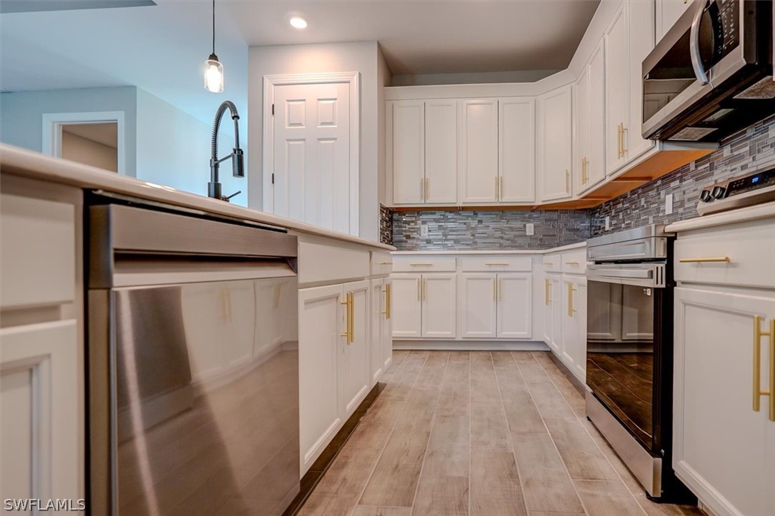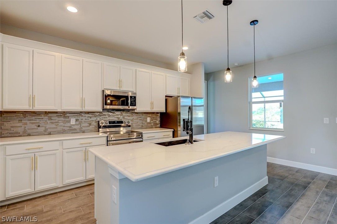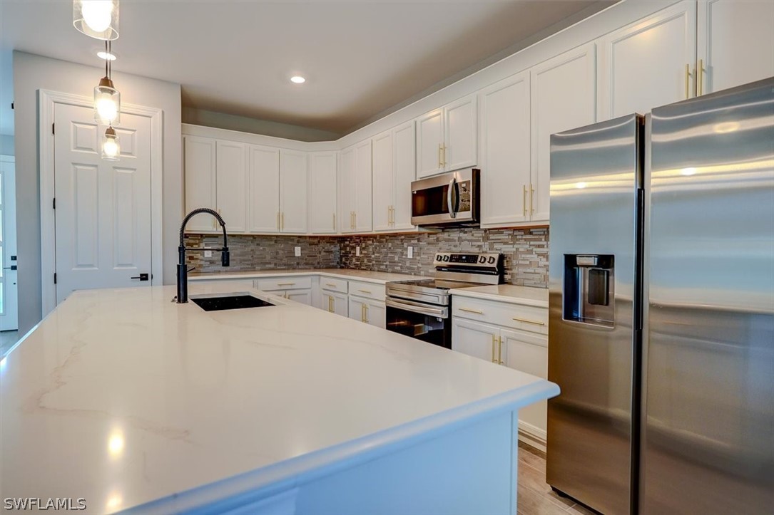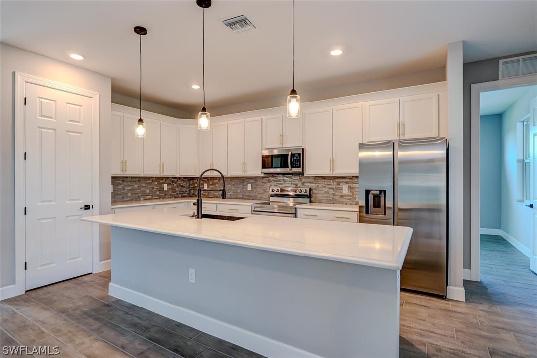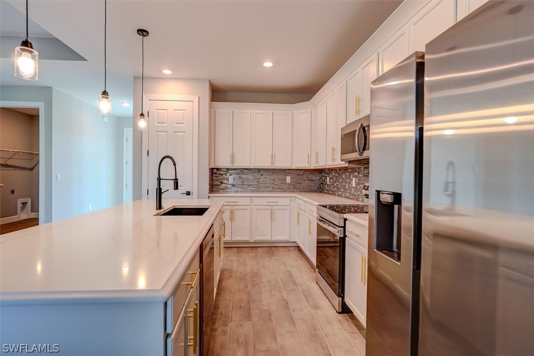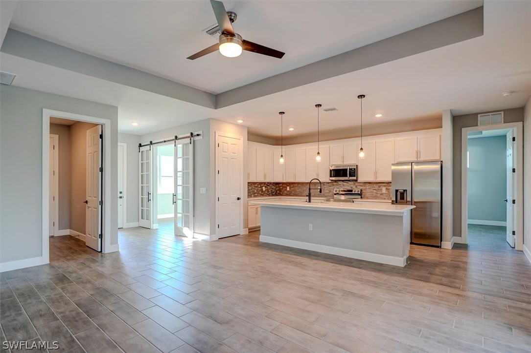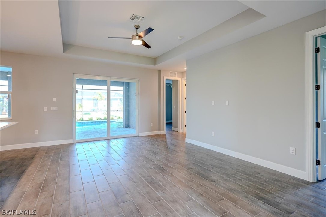 PAPERWORK SUBMITTED TO FEMA TO EXEMPT IT FROM FLOOD ZONE, NO FLOOD INSURANCE REQUIRED. BEAUTIFUL NEW CONSTRUCTION POOL HOME w/ 3 CAR GARAGE IN SW CAPE CORAL WITHOUT THE WAIT! Certificate of Occupancy in hand. CITY WATER & SEWER IN Situated in a desirable SW neighborhood, surrounded by Gulf Access canals. Come see this beautiful 4-bedroom w/Den, 2-bathroom 3 Car garage house before it's too late! Upon entering, you'll immediately notice the attention to detail. The heart of the home is the great room, which is flooded with natural light with glass sliders that lead to the extended under-truss lanai area and custom pool ready to soak in the Florida sun. The charming kitchen has ample cabinet space, stainless steel appliances, pantry, Quartz counter tops and a breakfast bar. Den that can be used a formal Dining space or a great home office or 5th bedroom. The primary suite includes transom window, tray ceiling feature and a barn door; the primary bath is spacious with double sinks Quartz countertops and spacious shower with frameless enclosure, double walk-in closets. Wood Plank Tile throughout the entire including the bedrooms. The three additional bedrooms share a guest bathroom with a tub/shower combo. 3 car garage to store all the toys. The exterior of the home includes a paver driveway & walkways along with sprinkler system upgraded landscaping. Other features that come with the home include All windows and doors are hurricane glass, paver driveway and lanai, a programmable thermostat, a Wi-Fi-enabled garage door opener. BUILDERS WARRANTY INCLUDED! Close to Schools, Shopping, amenities and many Parks, and recreational areas. Located in the heart of SW Cape Coral.