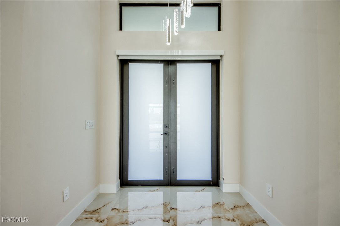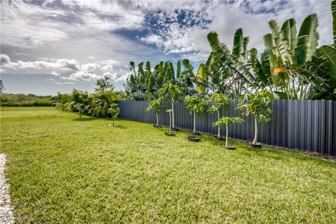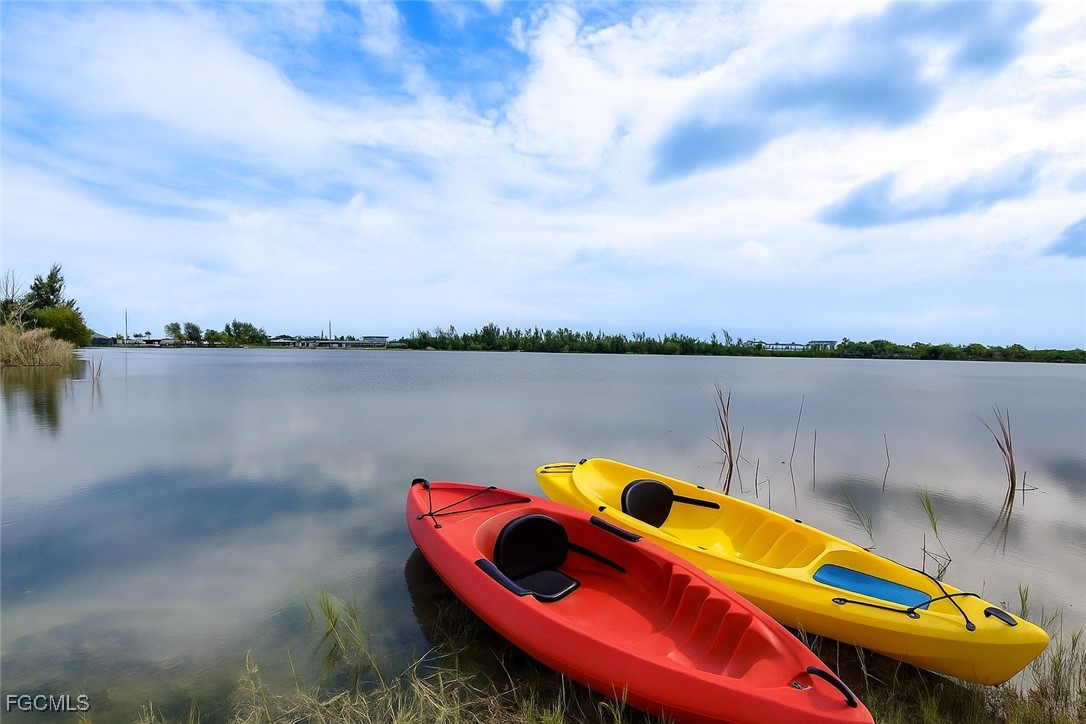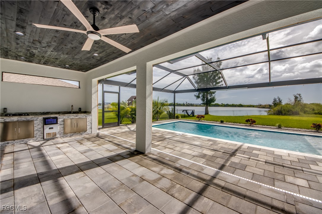 Motivated Seller!!! & will contribute towards buyer closing costs. Discover modern coastal living in this new construction 3-bedroom +Den, 3-bathroom home located in the SW Cape, adjacent to Pine Island corridor. This residence showcases an array of unique upgrades that set it apart. The 8-foot double doors at the entrance add an elegant touch, as you step into the house you will appreciate the attention to details and the volume ceilings equipped with a 72" fan giving it a grand view right as you arrive. Natural light floods into this house to highlight the open concept design. The kitchen features: Quartz waterfall tops eat-in Island kitchen is ready for the chef inside of you to shine or have a sit-down meal in the dining area equipped with a frameless glass wine cabinet. All the finishes in this home were used with style in mind, from the quartz countertops and large format porcelain tile floors to the soft-close Euro box cabinets and extra-high tray ceilings. The primary suite features expansive room, with walk-in closet and open display for your purse, or shoe collection, dual sink vanity and frameless glass shower enclosure with body sprayer and rain fall head. The Junior suite offers ample room and a full bath that doubles as a pool bath. The 3rd bedroom has cabinets in the closet and plenty of room for growing family, meanwhile the Den offers a great space for an office or media room. Now, take in the sun and unwind in the heated saltwater pool, featuring deck jets and ledge lounger, promising endless relaxation. The covered patio with wood accent ceiling, comes complete with an outdoor shower and a summer kitchen new ice maker, cooktop and sink ready for the cookouts and memories. Take in the breathtaking views of the lake where you can enjoy the sunrise and launch your kayaks or go fishing in your back yard. 3 car garage has been finished with epoxy garage floors, electric car charger and is ready for the toys to be stored in comfort. This property is nestled on a serene street in a prime location; this exquisite home is ready for you to experience the best of Florida living! Don't miss your chance to call this remarkable property your own. Close to Schools, Shopping on Pine Island Rd. and so many more amenities and restaurants.