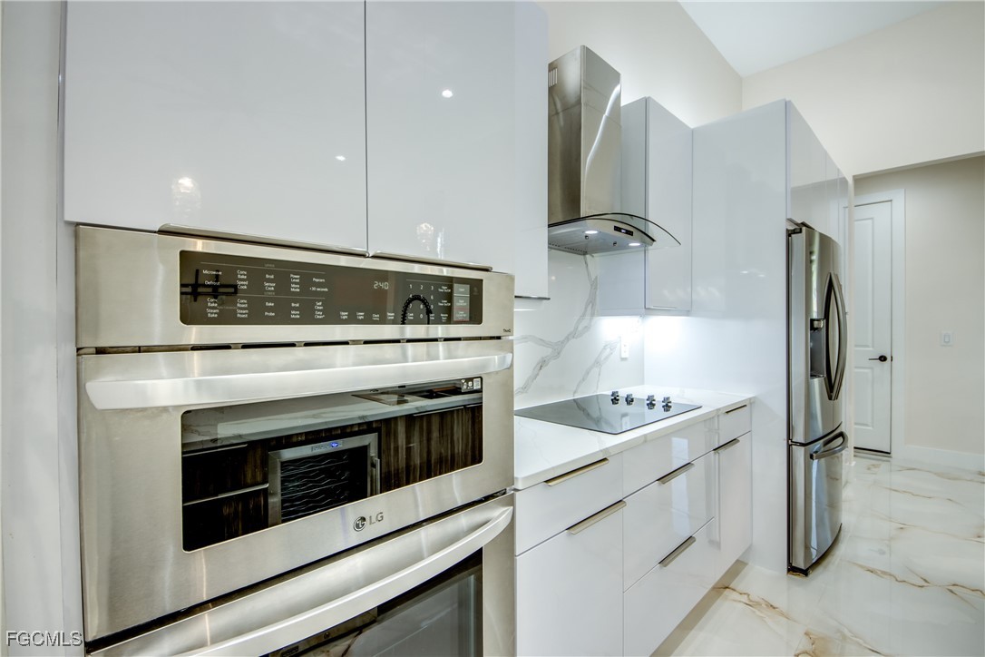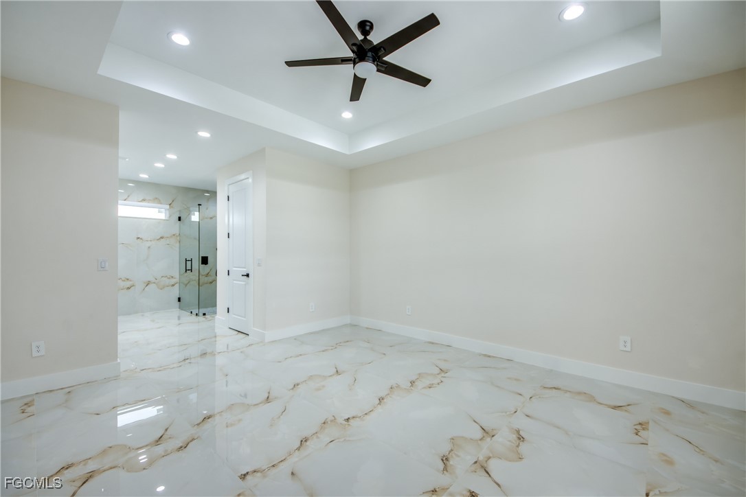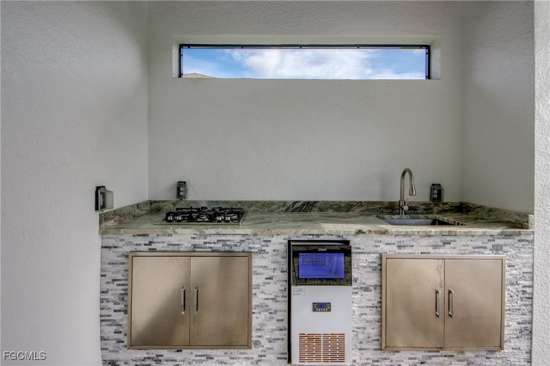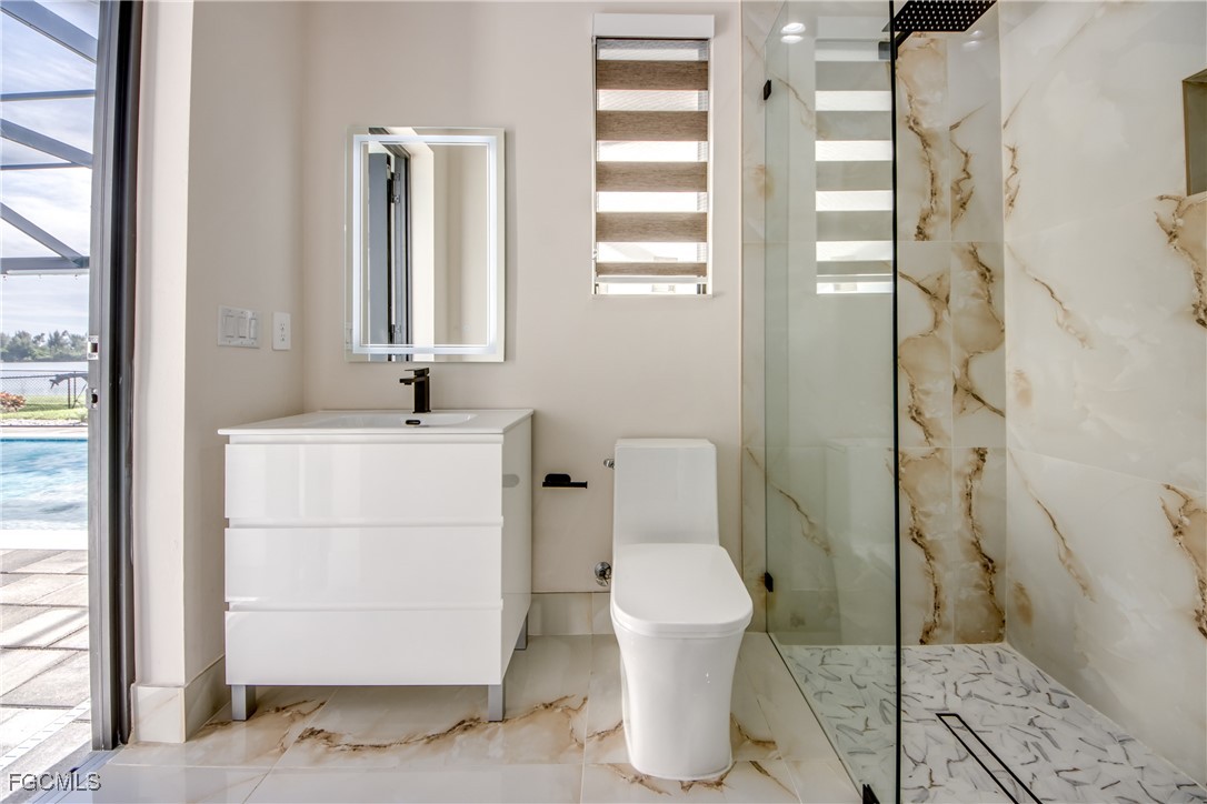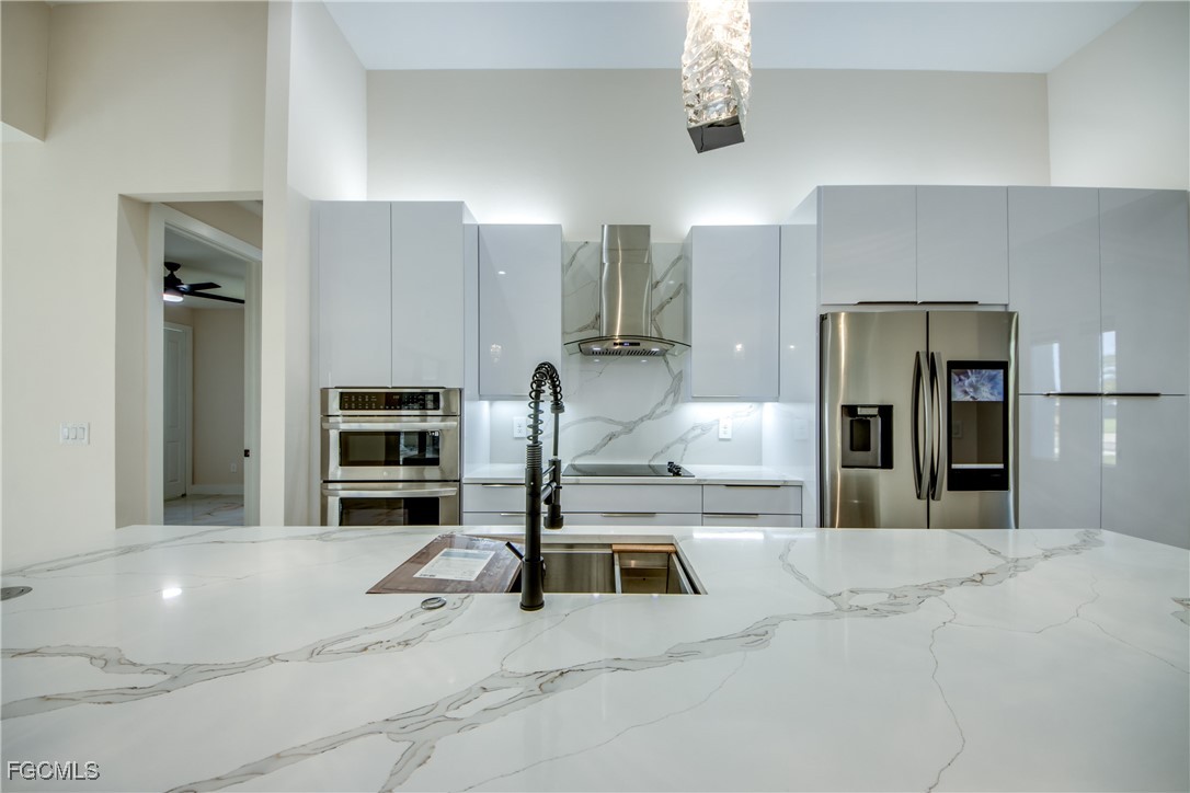 Motivated Seller!!! & will contribute towards buyer closing costs. Discover modern coastal living in this new construction 3-bedroom +Den, 3-bathroom home located in the SW Cape, adjacent to Pine Island corridor. This residence showcases an array of unique upgrades that set it apart. The 8-foot double doors at the entrance add an elegant touch, as you step into the house you will appreciate the attention to details and the volume ceilings equipped with a 72" fan giving it a grand view right as you arrive. Natural light floods into this house to highlight the open concept design. The kitchen features: Quartz waterfall tops eat-in Island kitchen is ready for the chef inside of you to shine or have a sit-down meal in the dining area equipped with a frameless glass wine cabinet. All the finishes in this home were used with style in mind, from the quartz countertops and large format porcelain tile floors to the soft-close Euro box cabinets and extra-high tray ceilings. The primary suite features expansive room, with walk-in closet and open display for your purse, or shoe collection, dual sink vanity and frameless glass shower enclosure with body sprayer and rain fall head. The Junior suite offers ample room and a full bath that doubles as a pool bath. The 3rd bedroom has cabinets in the closet and plenty of room for growing family, meanwhile the Den offers a great space for an office or media room. Now, take in the sun and unwind in the heated saltwater pool, featuring deck jets and ledge lounger, promising endless relaxation. The covered patio with wood accent ceiling, comes complete with an outdoor shower and a summer kitchen new ice maker, cooktop and sink ready for the cookouts and memories. Take in the breathtaking views of the lake where you can enjoy the sunrise and launch your kayaks or go fishing in your back yard. 3 car garage has been finished with epoxy garage floors, electric car charger and is ready for the toys to be stored in comfort. This property is nestled on a serene street in a prime location; this exquisite home is ready for you to experience the best of Florida living! Don't miss your chance to call this remarkable property your own. Close to Schools, Shopping on Pine Island Rd. and so many more amenities and restaurants.